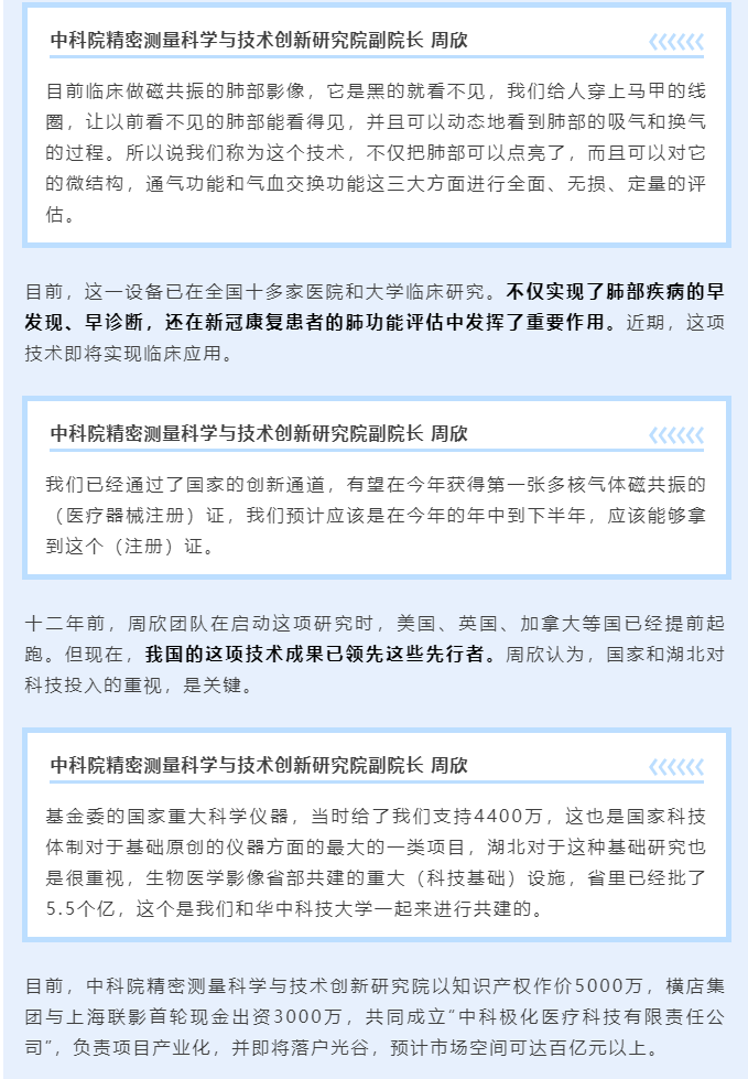 【湖北卫视】聚焦 | 新技术、新成果、新力量!全球首台气体肺部磁共振成像装备将在今年临床应用