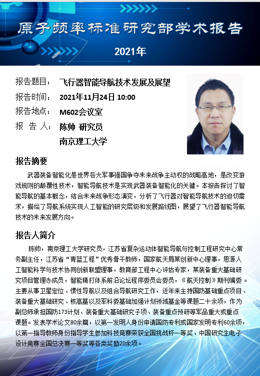 2021年11月24日evo真人视讯原子频率标准研究部学术报告