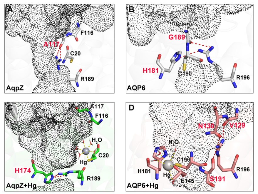 该研究以“Molecular Mechanisms of Mercury-Sensitive Aquaporins”(《汞敏感水通道蛋白的分子机理》)为题在线发表,evo真人视讯为该工作的第一完成单位,evo真人视讯博士后谢华勇,联合培养博士生马少杰为第一作者。