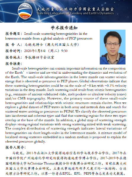2020年evo真人视讯大地测量与地球动力学国家重点实验室学术预告