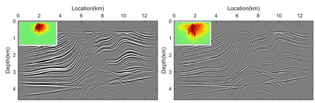 随着地震勘探进入更精细的岩性成像阶段(如:深水、深层、复杂储存、非常规储存等),如何正确理解地震成像结果,成为极为关键的问题。传统的地震成像以求取地震反射率为目标,在深层成像阶段会出现成像数值不准确等问题。该团队以地震波散射理论为基础,提出各向异性逆散射反演成像条件,并将此成像条件用于逆时偏移。该方法能够有效计算地层参数扰动值,为超深层保幅地震成像给予了有效的方法。