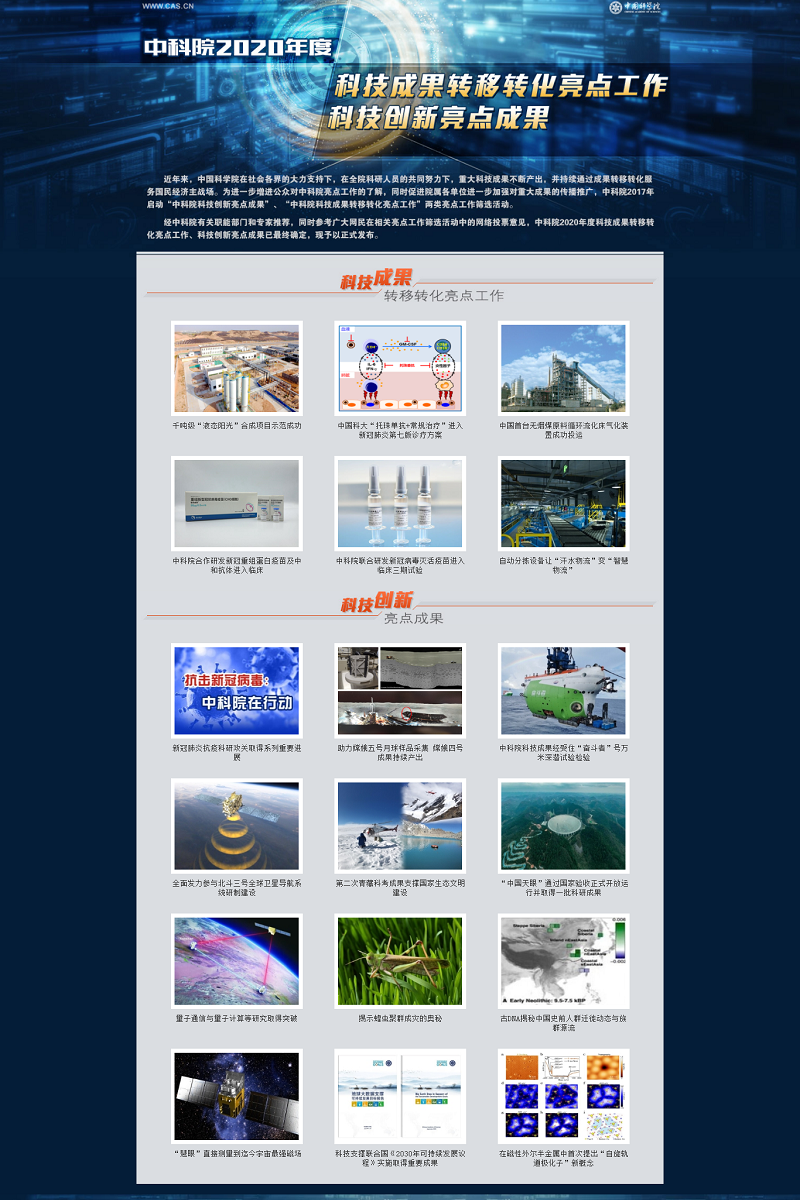 evo真人视讯三项科研成果入选中科院2020年度科技创新亮点成果